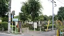 The entrance to Zoshigaya Cemetery close to the station in August 2016