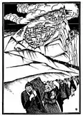 In 1931, Geller provided illustrations for Rose G Lurie's book, The Great March: Post Biblical Jewish Stories, a selection of Jewish stories for children covering the period from the destruction of the First Temple to the expulsion from Spain.[20][21] The book was published by the Union of American Hebrew Congregations and was intended to cultivate "a love for Jewish heroes, for the Jewish people, and for Jewish idealism."[21] John Drury, in his 1931 review of the Cafe Royale, "an intellectual and artistic rendezvous of the west side Jewish quarter", for his book Dining in Chicago, included "Todros Geller, the wood-block artist" as one of the "local Jewish celebrities in the arts and allied interests" who dined there.[22]