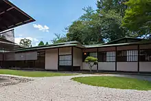 Murano designed this annex to the Miyako Hotel in Kyoto in a sukiya style. The site plan of Kasuien is laid out to enclose a garden and was inspired by Kyoto's Daigo-ji. The annex is set out as a series of pavilions set within the sloped landscape and connected by enclosed walkways. Although the overtone of the design is one of the Sukiya tradition, ordered by the principles of the tea ceremony, Murano grafted onto this his own modern interpretation by the use of materials like steel and concrete as the primary structure. He used these materials to change otherwise traditional details making them slimmer and lighter.[26]