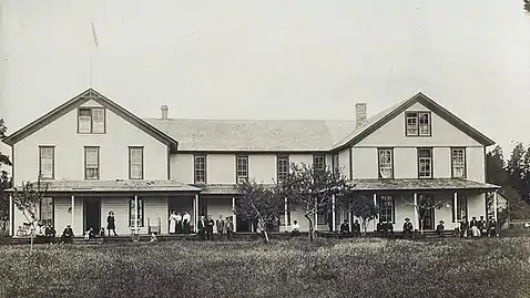 George H. Brown (November 4, 1824 - July 5, 1883), a Philadelphian born California gold seeker turned Portland butcher, was one of the first to settle on Toke Point when he came with his wife Charlotte Norris (? - June 22, 1891) and their two sons, Albert and Leonidas, in 1858. Among the Shoalwater Bay tribe, the Browns homesteaded 1400 acres of land, kept livestock, raised crops, and traded with locals. Their first daughter, Elizabeth "Lizzie" Brown grew up on Toke Point speaking both English and Chinook.[4]