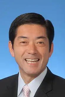 Tokihiro Nakamura (中村 時広, Nakamura Tokihiro, born 25 January 1960) is a Japanese politician and the current governor of Ehime Prefecture, located in the Shikoku region of Japan. He succeeded Moriyuki Kato in the 2010 Ehime gubernatorial election.[1] Nakamura has previously served as the mayor of Matsuyama, the largest city in Ehime and Shikoku, from 1999 to 2010. He has also represented Ehime in the national House of Representatives from 1993 to 1996 and before that in the Ehime Prefectural Assembly from 1987 to 1990.