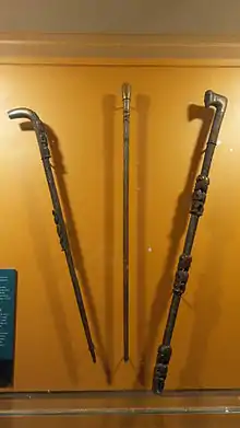 A tokotoko is a traditional Māori carved ceremonial walking stick. On a marae it is a symbol of authority and status for the speaker holding it.[1]