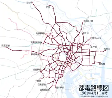 | Ikebukuro Line | 17 | Gokokuji-mae – Ikebukuro-Ekimae | early 1930s | 1969 | |