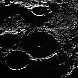 - ↑ "Permanently Shaded Polar Craters". NASA/Johns Hopkins University Applied Physics Laboratory/Carnegie Institution of Washington/National Astronomy and Ionosphere Center, Arecibo Observatory. 15 November 2012.