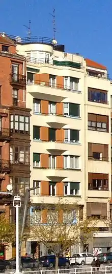 After working as an architecture Bilbao designed Altos Hornos de Vizcaya in 1929.[2] Like other architects of his generation he was influenced from German expressionism and the architectural approach led by Erich Mendelsohn.[3] Bilbao involved in politics and became a cofounder of the Basque Nationalist Action party in 1930 and the president of the Bilbao Municipal Housing Board in 1931.[1] He was also councillor and deputy mayor of the Bilbao City Council during the Second Republic.[1] In the period 1937–1938 he was minister of justice.[1]