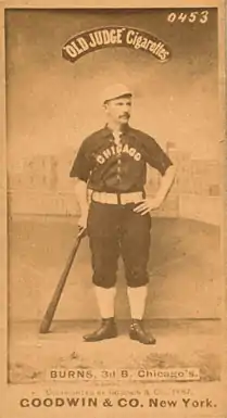 Burns was born in 1857 in Honesdale, Pennsylvania. He joined the Chicago team in the National League (then known as the White Stockings) in 1880. A nondrinker and nonsmoker, Burns stayed on the good side of Chicago manager Cap Anson because of his tame lifestyle.[2] He sported a red handlebar mustache during his playing career.[3]