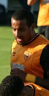 On 14 August 2013, Huddlestone moved to Hull City for an undisclosed fee believed to be about £5.25 million.[28] He made his debut on the first day of the 2013–14 season when he came off the bench in a 2–0 loss away at Chelsea.[29] On 28 December, he scored his first goal for Hull in a 6–0 home win against Fulham, his first goal since April 2011.[30] On 28 January 2014, Huddlestone acted as emergency goalkeeper after Hull City's goalkeeper Allan McGregor was sent off for squaring up with Crystal Palace's player Stuart O'Keefe. With Hull already making three substitutions, Hull's manager Steve Bruce ordered Huddlestone to take over the goalkeeping role.[31]