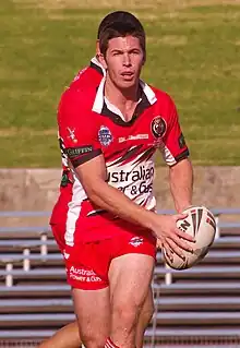 Humble joined the Wests Tigers for the 2012 season, starting the first match from the bench. However, a season-ending injury to James Tedesco saw him taking over as the team's starting fullback.[5] Humble said at the time, "At this stage of my career I need to lock myself into one spot and that is fullback."[7] Only weeks later, Tim Moltzen had been shifted to fullback, and Humble was playing at halfback. In the second half of the season, Humble played a number of games from the bench or playing hooker when Robbie Farah was unavailable. Described as, "the ultimate utility," Humble said, "I'm only 20 games in and wherever (coach) Tim Sheens puts me, I'll do the job to the best of my ability."[8]
