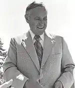 He was responding to the rapid population growth and suburban sprawl that the state was then experiencing, which was bringing with it strains on utilities and the rapid loss of arable land in the Willamette Valley.[1] McCall's second-term agenda was focused on ameliorating these issues and protecting Oregonians' quality of life from overdevelopment. Elements of this agenda included the Oregon Bottle Bill, a pioneering container-deposit law intended to reduce litter; and the Oregon Land Conservation and Development Act of 1973, which required comprehensive zoning and land-use planning for the entire state and created urban growth boundaries around each Oregon city.[14]