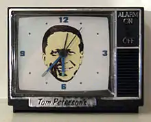 In October 1990, after he had ceased running the "Wake up!" TV spots, Peterson debuted an alarm clock in the shape of a television set with his face in the center and voice as the alarm, saying: "Wake up! Wake up to a happy day!" Peterson said of the promotion at the time: "If you can put your face in 5,000 homes in Portland, it certainly can't hurt."[18]