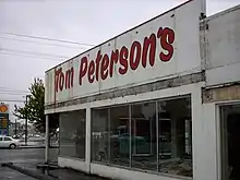 Sign outside last Tom Peterson's location in late 2008.