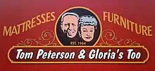 Other Peterson giveaways included hats, T-shirts, cups and coloring books.[14][17] Peterson also turned a bus into a trolley that traveled a circuit around his parking lots on 82nd and Foster.[14] To mark the tenth anniversary of Tom Peterson & Gloria's Too! and the couple's fiftieth wedding anniversary in September 2002, Peterson offered customers coffee mugs with photos of Tom and Gloria, fifty years ago and present day.[13]