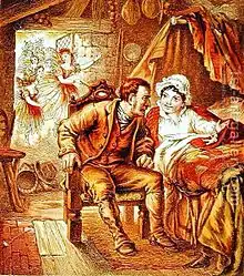 Tom's story was originally intended for adults, but it was relegated to the nursery by the mid-19th century. Vulgar episodes were sanitized, and moralizing colored the tale. In Charlotte Mary Yonge's 1856 adaptation, Tom resists his natural urges to play impish pranks, renounces his ties to Fairyland, and pronounces himself a Christian. As Mordred's rebellion wears on in the last days of Arthur's reign, Tom refuses to return to Fairyland, preferring to die as an honorable Christian.[4]