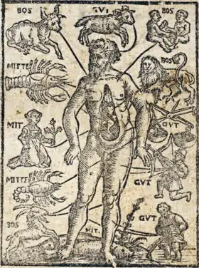Zodiac man, from a 1580 almanac