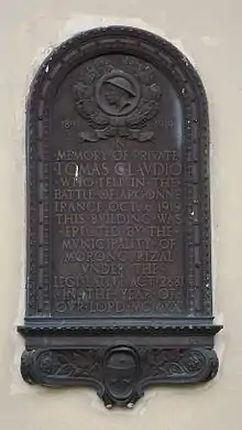 Tomas Claudio Memorial Elementary School, formerly called Tomas Claudio Memorial School, was constructed in 1921 in honor of Private Tomas Mateo Claudio, the first Filipino hero of Morong, Rizal, in the Philippines, who died during World War I in France.[1] The school is considered the Alma Mater of most Moronguenos.[2]
