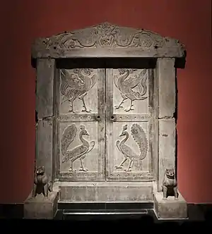 ![]() Gate of the tomb of Li Shou, 630 CE. Beilin Museum, Xi'an | |