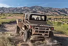 The Tomcar TX is a 4WD vehicle. The TX has 17" ground clearance, 4-wheel independent suspension, a one-piece fully welded frame and roll cage, an aluminum skid plate, a lower center of gravity, and a one-ton payload.[2]