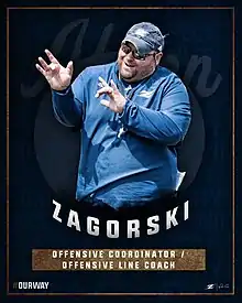 Zagorski originally rejoined Tom Arth at Chattanooga prior to the 2019 season, but shortly thereafter, Arth was named the new head coach at Akron. Zagorski followed Arth to Akron, and was the offensive coordinator and offensive line coach.[3] The entire staff was dismissed following the 2021 season.