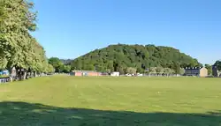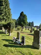 The cemetery is located on a low but very prominent hill 1.5 km SW of the city centre, between the Caledonian Canal and the River Ness. The hilltop is at 70 m, and its topographic prominence is 53 m.[2] The cemetery consists in two areas: a formal graveyard on the upper plateau, which also hosts a war memorial, and the Lower Cemetery, occupying the low ground around the hill. Some footpaths connect these two burial areas. The hillside is covered in woodland and provides a convenient habitat to several bird species. The hilltop offers a wide panorama on Inverness city, the Moray Firth and on the Ness Valley. The Tomahurich itself, as seen from the surrounding plain, is an important landmark.[3]