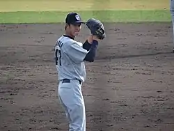 - ↑ "中日2位浜田バンザイ投法で竜党バンザイ(Chunchi's Hamada's "banzai" pitching method is a banzai for the Dragons)" (in Japanese). Nikkan Sports. 3 November 2014. Retrieved 24 August 2016.