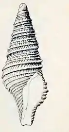 (Original description) The small, solid, pale yellow shell has a narrowly fusiform shape. it is tricarinate. The shoulder is sloping; The base of the shell is contracted. The siphonal canal is short and straight. The shell contains 5 whorls, of which two in the smooth, elevated protoconch. The body whorl contains three peripheral spiral keels. There are two such keels on each whorl of the teleoconch. Revolving threads occur in great numbers on the base and three or four on the shoulder. The interstices of the spirals are occupied by the broken lengths of close, fine, longitudinal, raised threads, which united described a double curve. The aperture is simple but probably underdeveloped in the specimens at hand.[2]