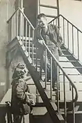 On his return to Japan in 1923,[5] Murayama introduced both expressionist and constructivist art,[3] but was drawn more toward the modern theater, especially the proletarian theater movement of the 1920s.[4] He applied many of the same techniques and aesthetic modes from his paintings into the realm of drama,[7] including elements from German expressionism, Dadaism, futurism and other avant-garde European movements.[5][2] He wrote and produced Marxist-inspired versions of Robin Hood and Don Quixote, which reflect his thinking that entertainment should play a vital sociopolitical objective. He painted illustrations for Rip Van Winkle, William Tell[4] and more books. In addition to European stories, he drew illustrations for the Japanese picture book New Friend and more. When Tomoyoshi painted illustrations, he used his pen name Tom, which is the shortened version of his name, Tomoyoshi.[8]