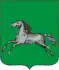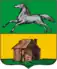 In a green shield is a silver horse with scarlet eyes and a tongue. The shield is surmounted by the Imperial crown and surrounded by golden oak leaves connected by the ribbon of St. Andrew.