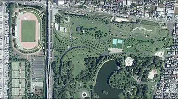 Toneri Park (舎人公園, Toneri Kōen) is a public park in Adachi Ward, Tokyo, Japan. It is the third biggest park in the 23 special wards of Tokyo. It was opened in 1981 to commemorate the 50th anniversary of Emperor Hirohito's rise to power.[1] The park can be accessed from the adjacent Toneri-kōen Station.