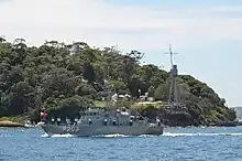 ![]() The Tongan patrol boat VOEA Savea (P203) underway in Sydney Harbour in 2013. | |