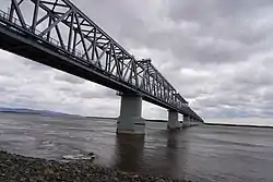 Tongjiang-Nizhneleninskoye railway bridge (Amur River Bridge) is an international Sino-Russian railroad bridge linking Nizhneleninskoye (in Russian: Нижнеленинское) in the Jewish Autonomous Oblast with Tongjiang (in Chinese: 同江) in Heilongjiang Province.