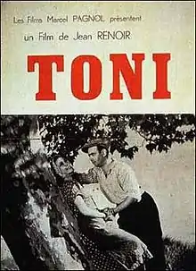 Toni is a 1935 French drama film directed by Jean Renoir and starring Charles Blavette, Celia Montalván and Édouard Delmont. The credits mention no writers other than the story writer Jacques Levert, but the script was later confirmed to be authored by Renoir and Carl Einstein.[1] It is an early example of the casting of non-professional actors and on-location shooting - both of which would influence the Left Bank of the French New Wave movement. Examining the romantic interactions between a group of immigrants (both from abroad and other parts of France) working around a quarry and a farm in Provence, it is also generally considered a major precursor to the Italian neorealist movement, for its concerns on the working class , use of non-professional actors and on-location shooting.