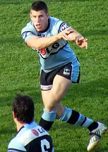 Caine began playing rugby league for the Gymea Gorillas before moving to De La Salle Caringbah. He attended Endeavour Sports High School where he played rugby league in the Arrive Alive Cup. He was signed by the Cronulla-Sutherland Sharks. In 2006, he began the season in the Sharks premier league side where he scored eleven tries. Caine was called up to the Shark's NRL premiership side on the bench in round twelve against the New Zealand Warriors. Caine attempted a kick in play which was charged down by Warriors prop Steve Price and Caine sustained a severe knee injury.[2] Caine signed with the Dragons for the 2007 and 2008 seasons but, after playing in just nine games, the club released him in 2008 when he quit to rest for his troublesome knee.[3] In 2009 he returned to the NRL, signing with his original club the Cronulla-Sutherland Sharks.[4] After playing in just 6 more games for a total of just 16 NRL games, Caine retired due to complications with his knee injury.