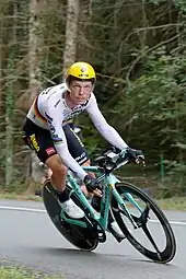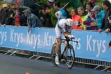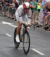 Martin spent two days in the leader's jersey at the Volta ao Algarve in February, having finished second on the third stage – an individual time trial – before losing the lead on the final day.[75][76] He finished fourth overall at March's Three Days of De Panne, again finishing second on an individual time trial stage.[77] He took his first victory of the season, with his fifth consecutive victory (and sixth overall) in the German National Time Trial Championships in June.[78] He won the individual time trial at the Tour of Britain,[79] and finished his season with gold medals in both the team time trial and the individual time trial at the UCI Road World Championships.[80][81]