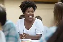 Tonya Mosley is an American radio and television journalist and podcaster.[1][2] Prior to 2022, Mosley co-hosted NPR and WBUR's midday talk show Here & Now along with Robin Young and Scott Tong.[3][4][5] In 2015, she was awarded the John S. Knight journalism fellowship at Stanford.[3] She hosts the podcast Truth Be Told, an advice show about race from KQED.[6] In 2023, Mosley was named co-host of Fresh Air, a talk show broadcast on National Public Radio and produced by WHYY in Philadelphia.[7][8]