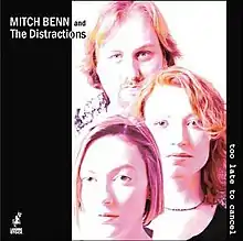 Too Late To Cancel is the third album by Mitch Benn, released in 2004 under the name of "Mitch Benn and The Distractions" with his backing band composed of Kirsty Newton (of Siskin) and Tasha Baylis (of Hepburn). All songs were written by Benn. Several had previous versions which had been in the radio shows The Now Show, It's Been a Bad Week and Mitch Benn's Crimes Against Music.