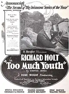 - ↑ Smith, Sumner (21 February 1925). "Too Much Youth; Richard Holt Has Leading Role in Story of Jazzy Youths Reformation". The Moving Picture World. New York City: Chalmers Publishing Co. 72 (8): 789. Retrieved 15 September 2021.