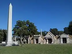 Facing Mausoleum Row is the Hurley Monument, a memorial to Santa Fe general manager James Hurley, who died in 1910. The obelisk is 40 feet tall, the shaft a single piece. It was paid for by donations from Santa Fe employees across the nation.