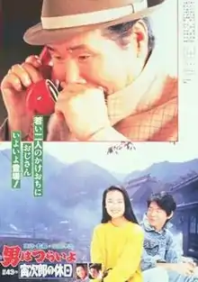 Tora-san Takes a Vacation (男はつらいよ 寅次郎の休日, Otoko wa Tsurai yo: Torajirō no Kyūjitsu) is a 1990 Japanese comedy film directed by Yoji Yamada. It stars Kiyoshi Atsumi as Torajirō Kuruma (Tora-san), and Kumiko Goto as his nephew's love interest or "Madonna".[1] Tora-san Takes a Vacation is the forty-third entry in the popular, long-running Otoko wa Tsurai yo series.