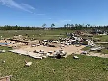 A block foundation home that was completely swept away and destroyed at EF3 intensity west of Alford, Florida.