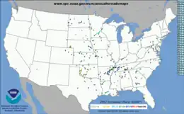 - ↑ "Severe Weather Database Files (1950-2021)". Storm Prediction Center. National Oceanic and Atmospheric Administration. July 11, 2022. Retrieved November 12, 2022.