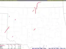 ![]() Approximate touchdown location of killer tornadoes in 1955 Summary of tornadoes[2]