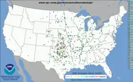 - ↑ "Severe Weather Database Files (1950-2021)". Storm Prediction Center. National Oceanic and Atmospheric Administration. July 11, 2022. Retrieved November 12, 2022.