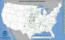 - ↑ "Severe Weather Database Files (1950-2021)". Storm Prediction Center. National Oceanic and Atmospheric Administration. July 11, 2022. Retrieved November 12, 2022.