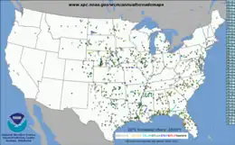 - ↑ "Severe Weather Database Files (1950-2021)". Storm Prediction Center. National Oceanic and Atmospheric Administration. July 11, 2022. Retrieved November 12, 2022.