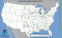 - ↑ "Severe Weather Database Files (1950-2021)". Storm Prediction Center. National Oceanic and Atmospheric Administration. July 11, 2022. Retrieved November 12, 2022.