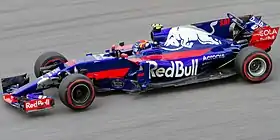 The Toro Rosso STR12 is a Formula One racing car designed and constructed by Scuderia Toro Rosso to compete during the 2017 Formula One season. The car made its competitive début at the 2017 Australian Grand Prix. It was initially driven by Daniil Kvyat and Carlos Sainz, Jr., however both drivers were replaced by Pierre Gasly and Brendon Hartley towards the end of the season, after the former was dropped from the Red Bull programme, and the latter began a 2018 contract with Renault four races early.[2][3]