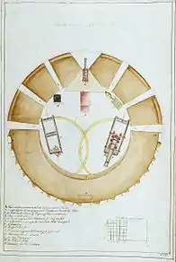 Late in the previous year, the tower's French defenders had abandoned the tower after HMS Lowestoffe (32 guns) had fired two broadsides at it. The French easily dislodged the garrison of Corsican patriots that had replaced them.[2] Still, the British were impressed by the effectiveness of the tower when it was properly supplied and defended so they copied the design. However, they misspelled the name as "Martello" for "Mortella". When the British withdrew from Corsica in 1796, they blew up the tower and left it in an unusable state.[3]