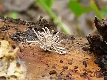 | Torrubiella arachnophila var. leiopus growing on a dead spider | |