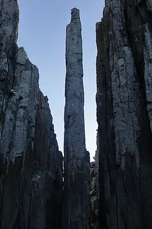 - ↑ "Tasmania's Totem Pole – A Climber's Best Challenge". Unusual Places. Retrieved 11 December 2015.