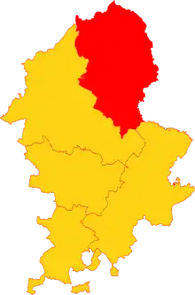 Of the local government Districts created in the 1974 re-organisation, nearly all of Staffordshire Moorlands falls within Totmonslow Hundred, as does a substantial part of East Staffordshire including the town of Uttoxeter.[11] The Hundred is bounded on the north-east by Derbyshire, on the south-east by Offlow Hundred, on the south and west by Pirehill Hundred, and on the north-west by Cheshire.